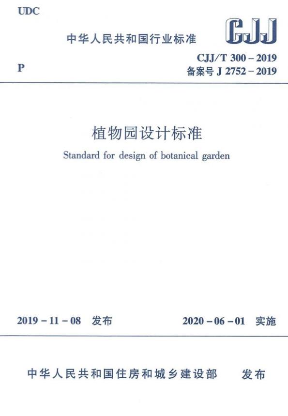 根據(jù)中華人民共和國住房和城鄉(xiāng)建設(shè)部2019年第286號公告,國家行業(yè)標(biāo)準(zhǔn)《植物園設(shè)計標(biāo)準(zhǔn)》,編號為CJJ/T 300-2019,自2020年6月1日起正式施行。